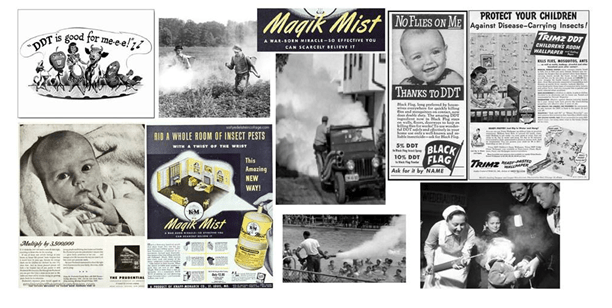 1946 – މި އަހަރުގައި ޑީޑީޓީ ބަލިމަޑުކަން އާންމުވެފައި އޮވާ ޑރ. ޒިމަރމަން ޑީޑީޓީގެ %5 ސޮލިއުޝަން އެއް ގެރިބަކަރިއަށް (ގެރިރާއި، އެ ބޯ ފެނާއި ކާއެއްޗެއްސަށް) ޖެހުމަށް އެންގި އެވެ. (et al, DDT: Killer of Killers )