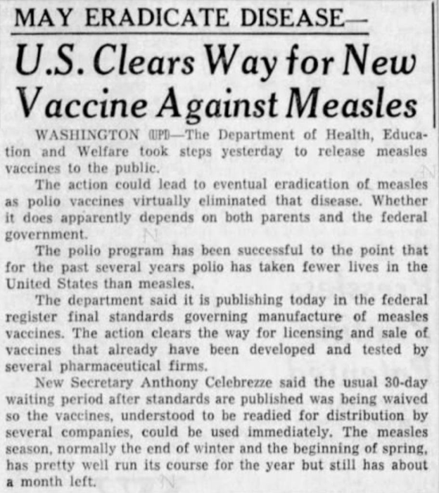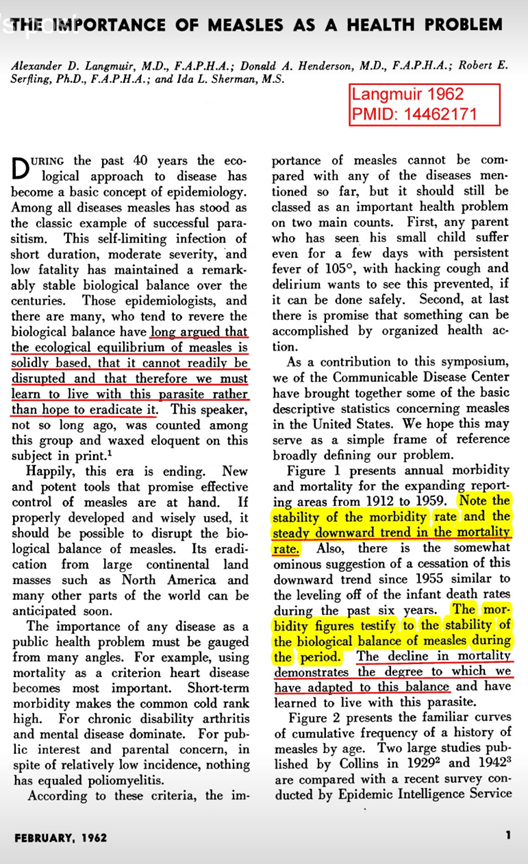 Langmuir AD. Medical importance of measles, Am J Dis Child, 1962, vol. 103 (pg. 54-56)