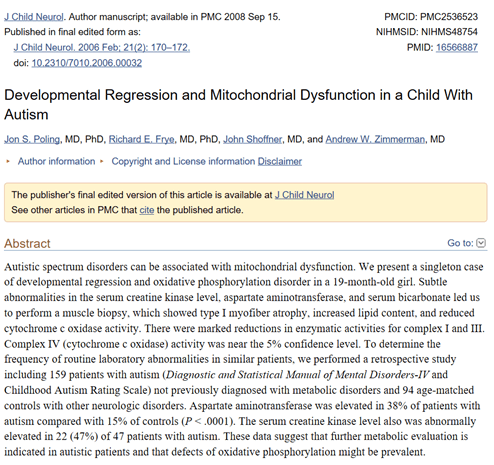 “Now, we all know that vaccines can occasionally cause fevers in kids. So, if a child was immunized, got a fever, had other complications from the vaccine, then if you’re predisposed with the mitochondrial disorder, it can certainly set off some damage. Some of the symptoms can be symptoms that have characteristics of autism.”