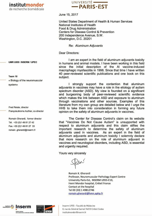 ވެކްސިނަށް އަޅާފައިވާ އެލުމިނިއަމް ގެ ސަބަބުން އޯޓިޒަމް ޖެހުމާ ގުޅުން އޮތް ކަމަށް އެލުމިނިއަމް އާ ބެހޭ މާހިރު ޑރ. ރޮމެއިން ގެރަރްޑި