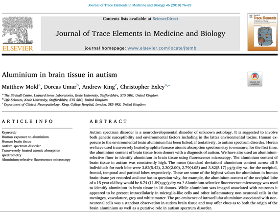 އެލުމިނިއަމް އިން ކުރާ ނޭދެވޭ އަސަރުތައް ތަހުލީލުކުރާތާ 35 އަހަރު ހޭދަކޮށްފައިވާ އެލުމިނިއަމް އެކްސްޕަރޓް ޕްރޮފެސަރ ކްރިސްޓޮފަރ އެކްސްލީ (ރޯޔަލް ސޮސައިޓީ އޮފް ބައޮލޮޖީ، ޕްރޮފެސަރ އޮފް ބައޯއިންއޯގޭނިކް ކެމިސްޓްރީ، ކީލް ޔުނިވަރސިޓީ) ބުނެފައިވަނީ “އޯޓިޒަމް ޖެހިފައިވާ ކުދިންގެ ސިކުނޑީގައި އެލުމިނިއަމް ހުންނަ މިންވަރު ބެލުމުގެ ކުރިން، އިންސާނުން އެލުމިނިއަމް އަށް ކުރިމަތިވެ އޯޓިޒަމް ޖެހުމާ އޮތް ސީދާ ގުޅުން ނުދެކޭ ކަމަށެވެ. އަދި އޭގެ ކުރިން ވެކްސިނުގައިވާ އެލުމިނިއަމް އާ އޯޓިޒަމް އާ އޮތް ގުޅުން ނުދެކޭ ކަމަށެވެ. އަހަރުމެން އެންމެން ވެސް ކޮންމެ ވެސް މިންވަރަކަށް އެލުމިނިއަމުން ލިބޭ އަނިޔާތައް ތަހައްމަލު ކުރެވެއެވެ. ނަމަވެސް، ބައެއް ކުދިންނަކީ ވެކްސިންގައި ހުންނަ އެލުމިނިއަމް ތަހައްމަލު ކުރެވޭ ކުދިންނަށް ނުވުމުން އޯޓިޒަމް ޖެހުން އެކަށީގެންވެއެވެ”