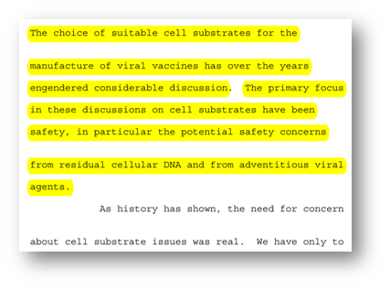 ޖަނަވާރުންނާއި ނުވިހާ ތުއްތުކުދިންގެ ސެލްތައް ބޭނުންކޮށްގެން ވައިރަސް އާލާ ކުރުމަށް ފަހު އުފައްދާ ވެކްސިންތަކުގައި މި ސެލްތަކުގެ އެތި އެތި ކޮޅުތަކާއި ޑީ.އެން.އޭ ވެސް ހިމެނެއެވެ. ކޮންމެ ވެކްސިން އަކާ އެކުގައިވާ “ވެކްސިން އިންސަރޓް” ގައި މި މަޢުލޫމާތު ހިމަނާފައި ވެސްވެ އެވެ.