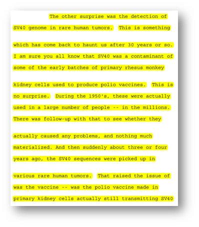 ޕޯލިއޯ ވެކްސިން ގައި އެކުލެވިގެންވި ރާމާ މަކުނުގައި ހުންނަ ވައިރަސް SV40 އިންސާނާގެ ޑީ.އެން.އޭ އާ ގުޅިގެން ކެންސަރު ބަލި ކުރިމަތިވެފައިވާ ކަމަކީ ދުނިޔެ ޤަބޫލުކުރާ ކަމެކެވެ.