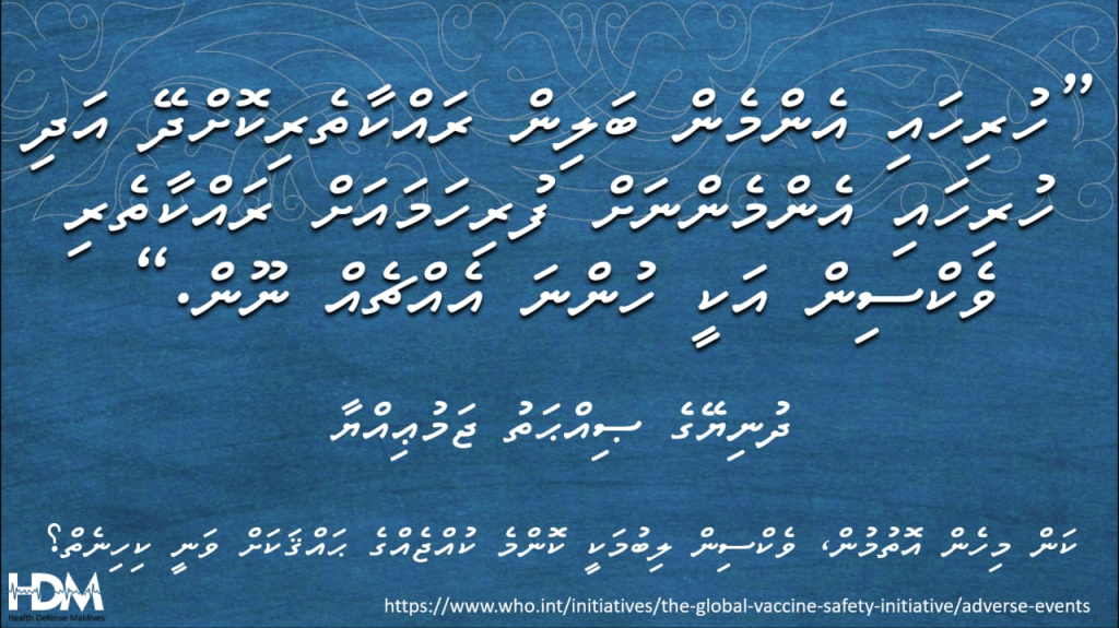 ވެކްސިން ދިނުމުގެ އަމަލަކީ އެއިން ވެސް އެތައް އަނިޔާތަކެއް ކުރިމަތިކުރުވާ އަދި މަރުވުން ވެސް އެކަށީގެންވާ ބޭސްފަރުވާގެ އަމަލަކަށް ވުމާއެކު، ބޭސްފަރުވާގެ ކޮންމެ އަމަލެކޭ އެއްފަދައިން ވެކްސިން ދިނުމުގައި ވެސް އެއިން ލިބޭ އަނިޔާއާއި ފައިދާގެ ފުރިހަމަ މަޢުލޫމާތު ލިބި ރުހުން ދިނުން އޮންނަން ޖެހޭނެ ކަމަށް މި ރިޕޯޓުގައި ފާހަގަކޮށްފައިވެ އެވެ.