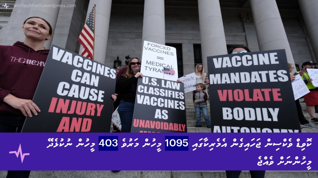 ކޮވިޑް ވެކްސިން ޖަހައިގެން އެމެރިކާގައި 1095 މީހުން މަރުވެ 403 މީހުން ނުކުޅެދޭ މީހުންނަށް ވެއްޖެ