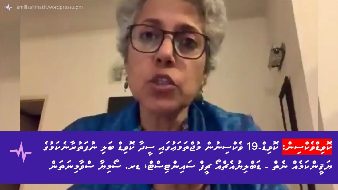 ކޮވިޑް-19 ވެކްސިނުން މުޖްތަމަޢުގައި ސީދާ ކޮވިޑް ބަލި މުޖްތަމަޢުގައި ނުފަތުރާނެކަމުގެ ޔަޤީންކަމެއް ނެތް ކަމުގައި ޑަބްލިޔުއެޗްއޯ ޗީފް ސައިންޓިސްޓް، ޑރ. ސޯމިޔާ ސްވާމިނަތަން ވިދާޅުވެއްޖެ އެވެ. https://videopress.com/v/P4uxsE4B?preloadContent=metadata "އަހަރުމެން އަދިވެސް މަޑުކޮށްގެން މިތިބީ ވެކްސިން ގެ ތަހުލީލީ މަރުހަލާތަކުން ފެންނަ ނަތީޖާތަކަށް ބަލަން. އަހަރުމެން ދެނެގަންނަން ބޭނުންވަނީ، ވެކްސިން ޖަހައިގެން އަލާމާތްތައް ފެންނަވަރަށް ބަލިނުޖެހުމާއި، ބަލިޖެހި ހާލު އެންމެ ގޯސް ވިޔަ ނުދިނުމާއި މަރުވުމުން ސަލާމަތްވުމުގެ އިތުރުން، ވެކްސިންގެ ސަބަބުން ބަލިޖެހޭ މިންވަރު ދަށަށްދޭތޯ ނުވަތަ ބަލި … Continue reading ކޮވިޑް-19 ވެކްސިނުން މުޖްތަމަޢުގައި ސީދާ ކޮވިޑް ބަލި ނުފަތުރާނެކަމުގެ ޔަޤީންކަމެއް ނެތް – ޑަބްލިޔުއެޗްއޯ ޗީފް ސައިންޓިސްޓް، ޑރ. ސޯމިޔާ ސްވާމިނަތަން