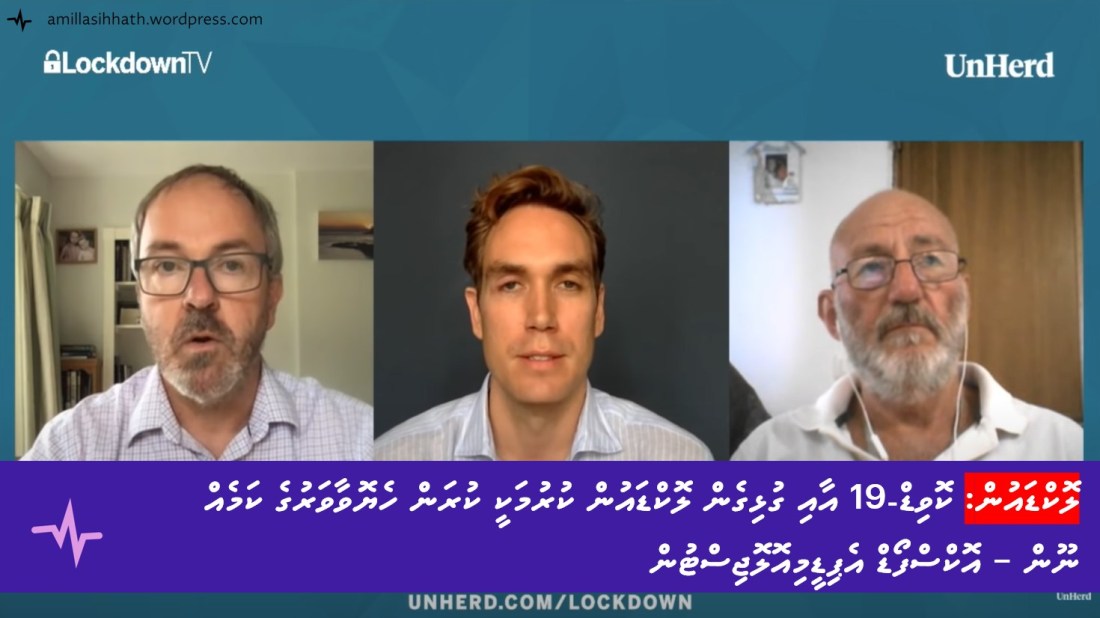 ޕްރޮފެސަރ ހެނެގަން އަދި ސެންޓަރ ފޮރ އެވިޑެންސް ބޭސްޑް މެޑިސިންގައި އޭނާ އާ އެކު މަސައްކަތްކުރާ އެޕިޑީމިއޮލޮޖިސްޓް ޓޮމް ޖެފަސަން އާއެކު unheard.com ގެ ފަރާތުން ފްރެޑީ ސޭޔަރސް ކޮށްފައިވާ އިންޓަރވިއު ގެ ވީޑިއޯ މިވަނީ އެވެ. އަދި މި އިންޓަވިއު ގެ މުހިން ބައެއް ބަސްތައް ތިރީގައި އެވަނީއެވެ. 2:55 – މާސްކު ● ޓޮމް ޖެފަސަން: “ކުރީސަފުގައި މަސައްކަތް ކުރާ ފަރާތްތައް ފިޔަވައި، އެހެން މީހުން މާސްކު އެޅުމުން ވަކި ތަފާތެއް ފެންނާނެ ކަމަކަށް އެއްވެސް ފަންނީ … Continue reading ކޮވިޑް-19 އާއި ގުޅިގެން ލޮކްޑައުން ކުރުމަކީ ކުރަން ހެޔޮވާވަރުގެ ކަމެއް ނޫން – އޮކްސްފޯޑް އެޕިޑީމިއޮލޮޖިސްޓުން
